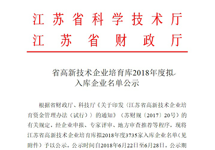 公司本次入選江蘇省高新技術(shù)企業(yè)培育庫,是對全體研發(fā)技術(shù)人員的鼓舞和肯定;是對公司自成立以來一直堅(jiān)持走科技創(chuàng)新道路的回報(bào)。公司將充分利用好省科技廳、省財(cái)政廳的扶持政策,在今后的工作中繼續(xù)加大研發(fā)投入,擴(kuò)大申報(bào)數(shù)量,進(jìn)一步鞏固產(chǎn)品技術(shù)優(yōu)勢,提升公司核心競爭力。