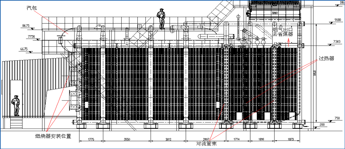 臥式角管的鍋爐(水冷壁、對流管束和過熱器)